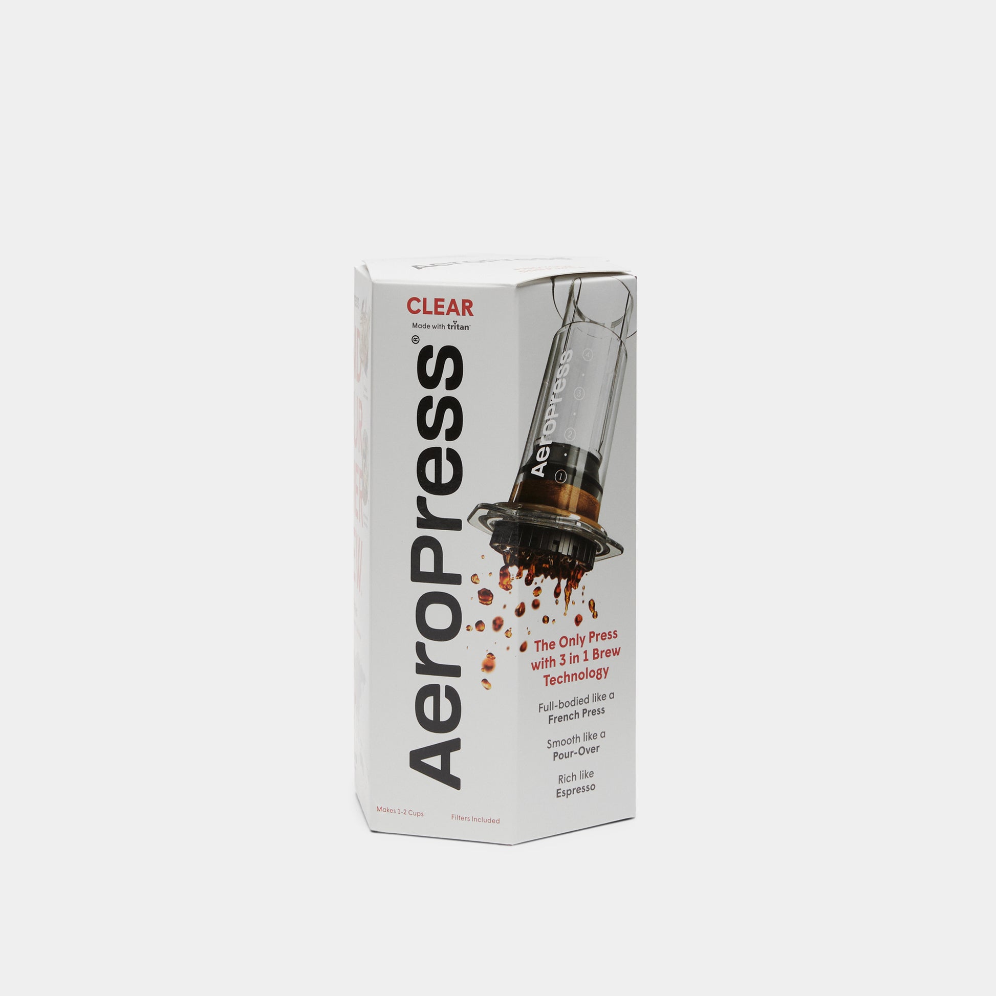 Aeropress' iconic coffee press, made with the same patented technology, now available in crystal clear, shatterproof Tritan™. Cool enough for display, tough enough for the road.